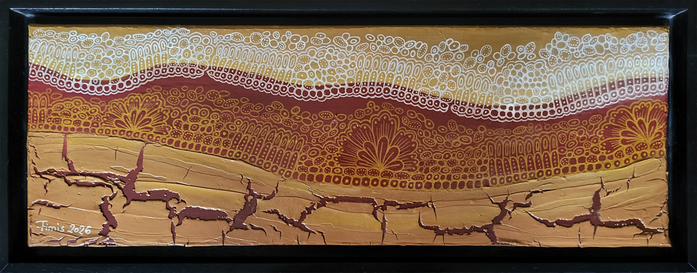 Fissures 300 € 2025 Aquarelle et POSCA Cadre sous verre 53 x 53