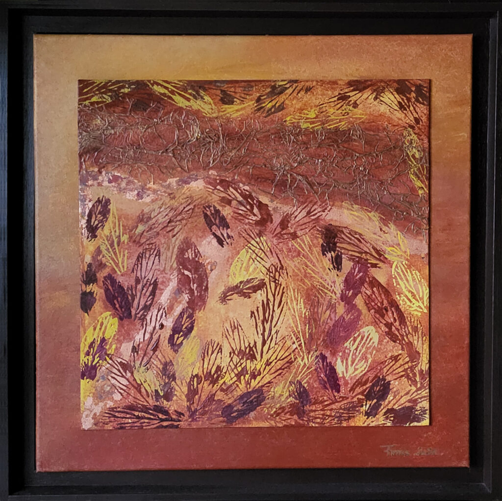Peinture acrylique technique mixte sur châssis toilé Caisse américaine noire 30 x 30